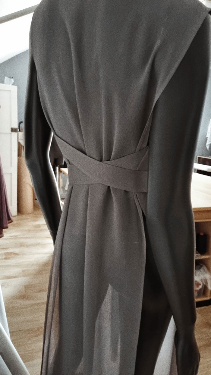 Veel üks vahva mõte on õmmelda ühest aga kahepoolsest kangast kleit. Kasutasin seda mõtet ühe imelise siidkanga peal. Hommikul läksin välja heledama kleidipoolega ja vahetasin kleidi poolt lõunasöögil, restorani toalettruumis. Hotellitoast kaasa olin võtnud teist värvi vöö, mis sobis ideaalselt uue outlook’iga.