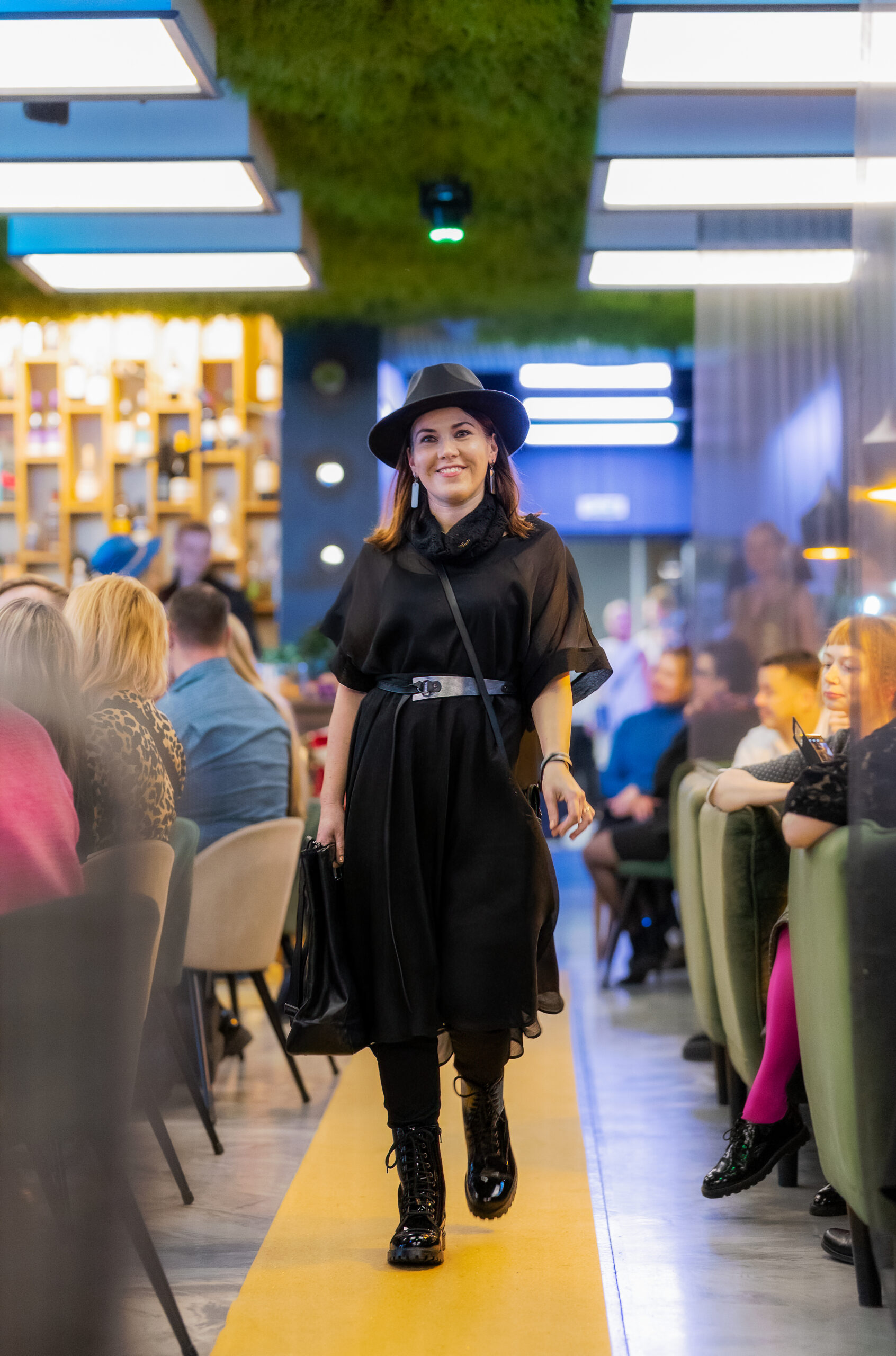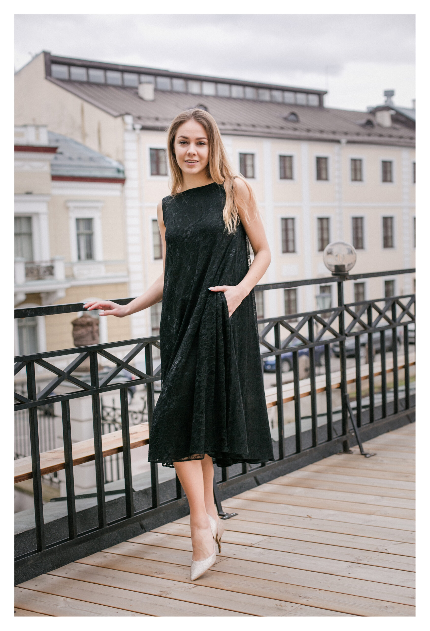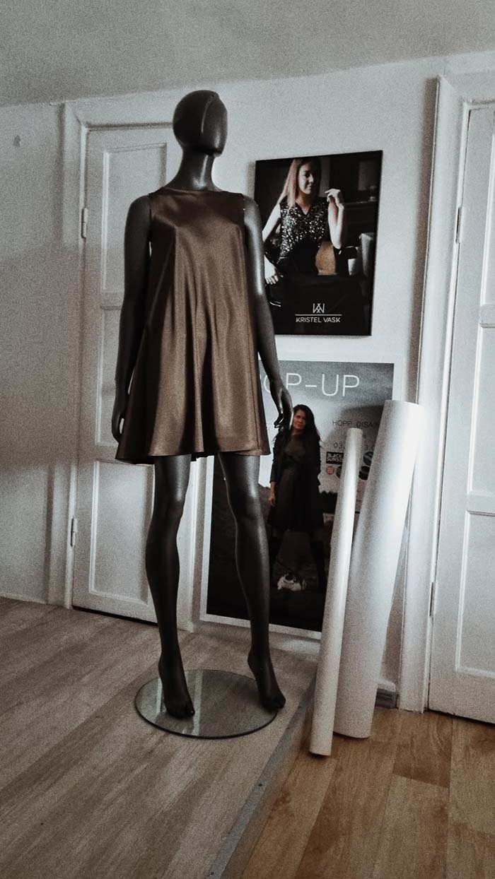 Musta värvi komplektiga piltidel on hõlsti all samast šifoonkangast läbikumavad pikad püksid ja mustriga sukapüksid. Komplekt on pehme, õhuke ja ei kortsu. Hõlsti on mõnus kombineerida ka hõlstkleidiga.