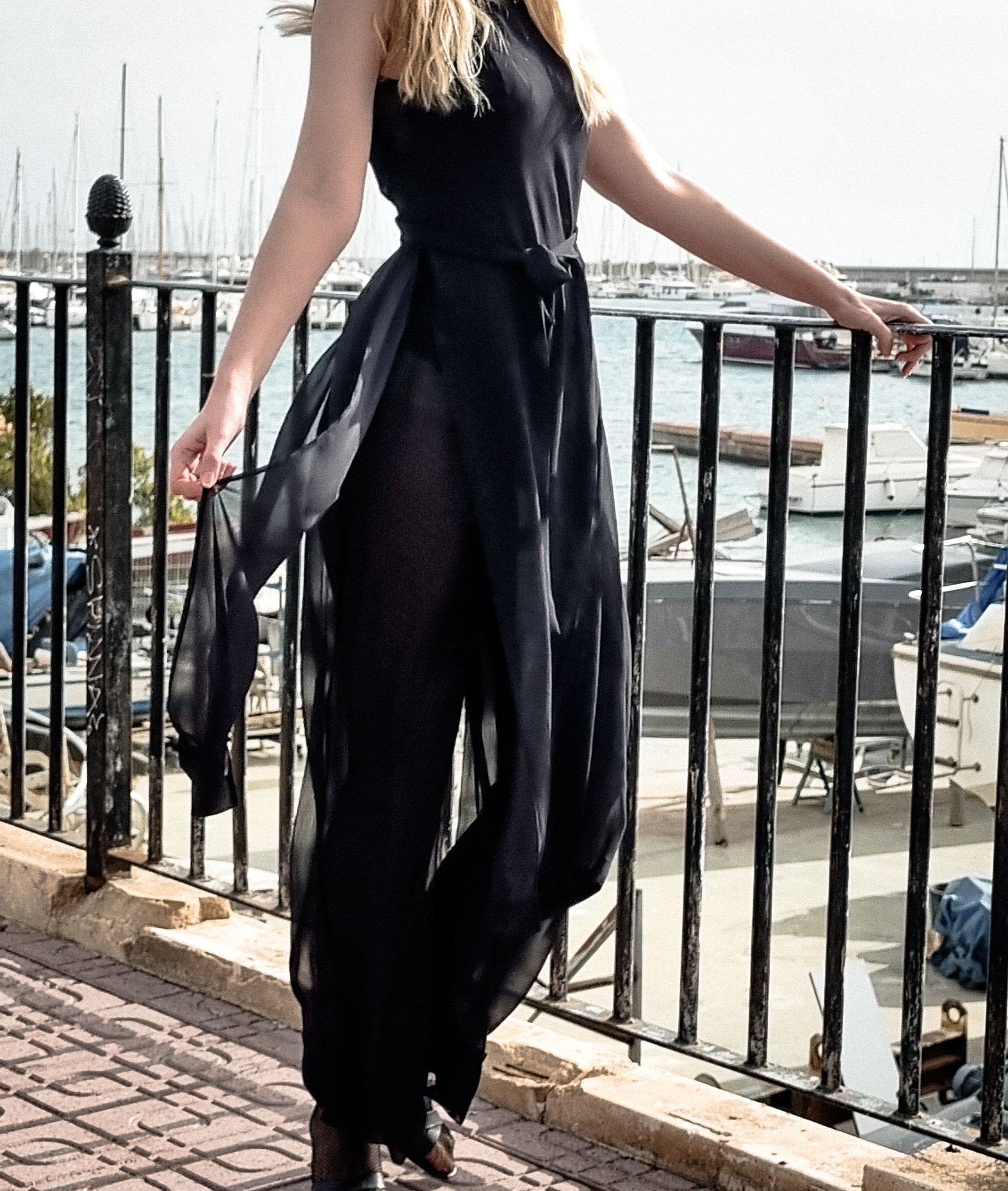 Teine minu lemmik reisidel on must šifoonist hõlstkleit. See on oversize suuruses must kleit, mis mahub selga suurustele S kuni XL. Seda kleiti võib kanda rannas bikiinide peal, “onu” juubelil väikese musta kleidi, pükskostüümi peal … argisel, tänavastiilis, rannas, pidulikul moel, valik on Sinu! Kleiti on lihtne eemaldada ja seeläbi hetkega oma välimust muuta. Ka on ta mahuliselt nii väike, et mahub kotikesse.
