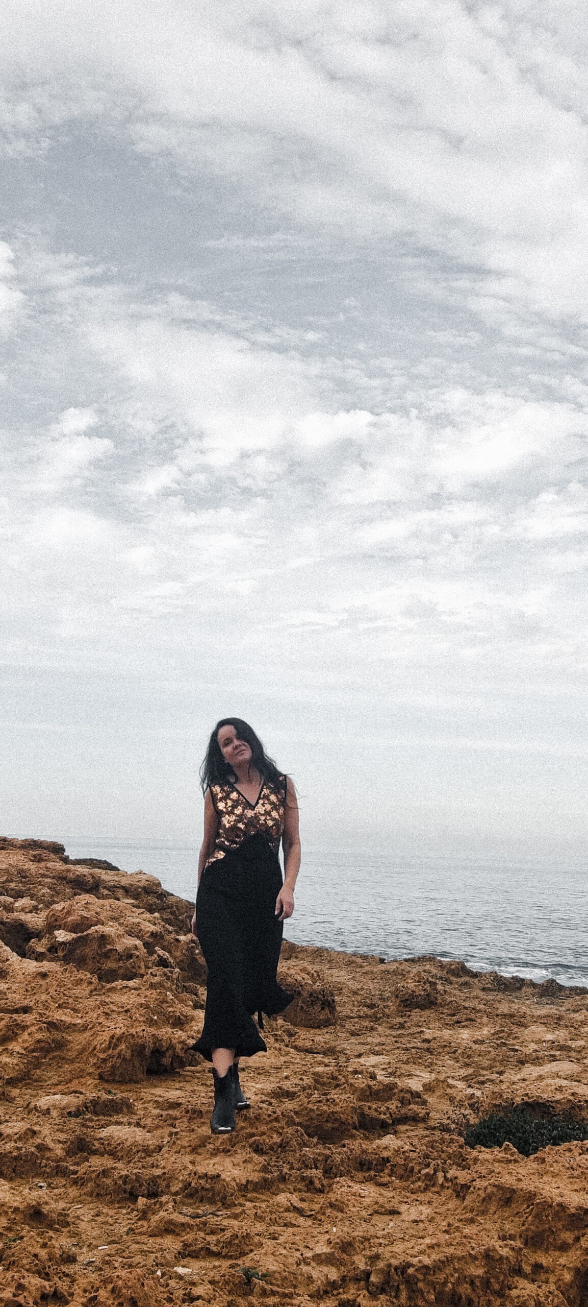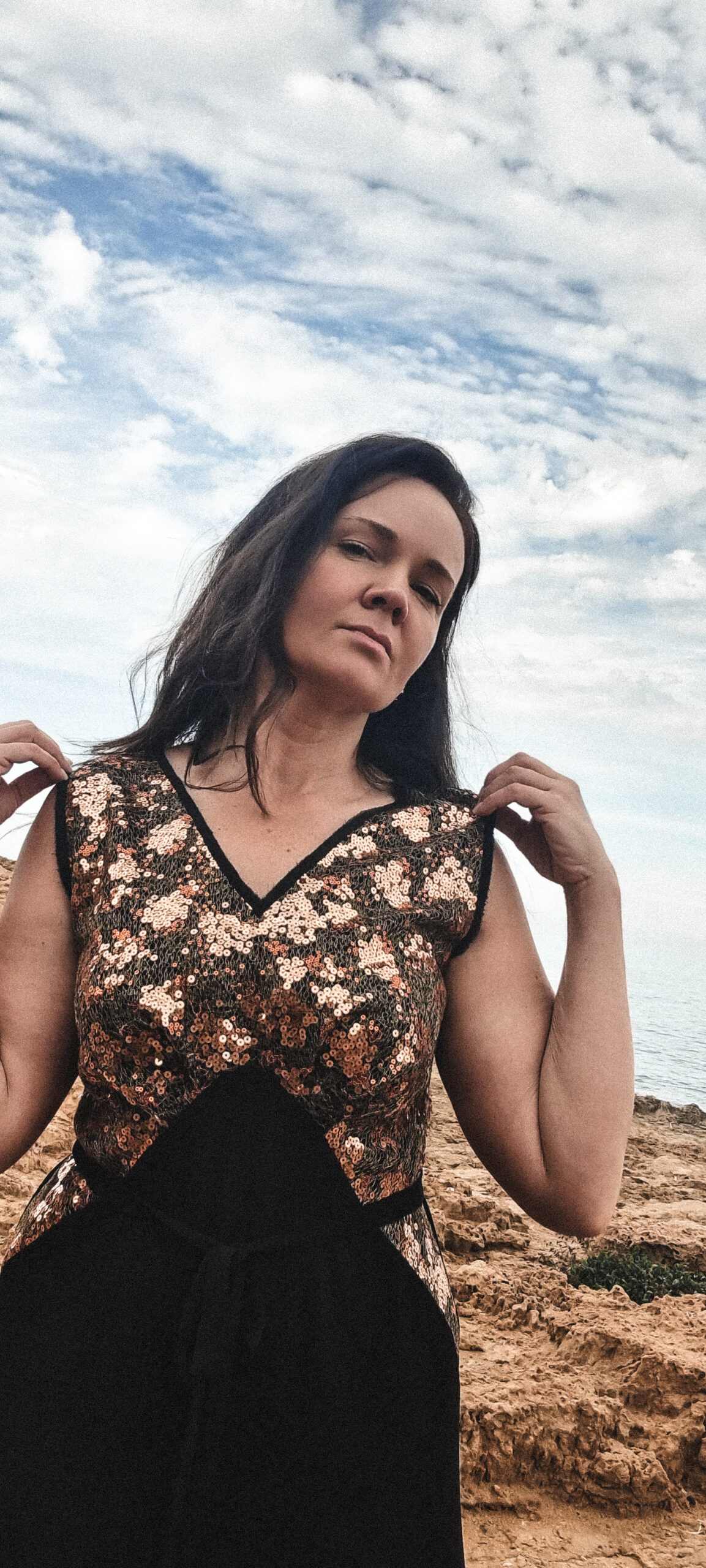 Kaunilt vaskse rinnaosaga ja ebasümmeetrilise alläärega kaunis kleit.