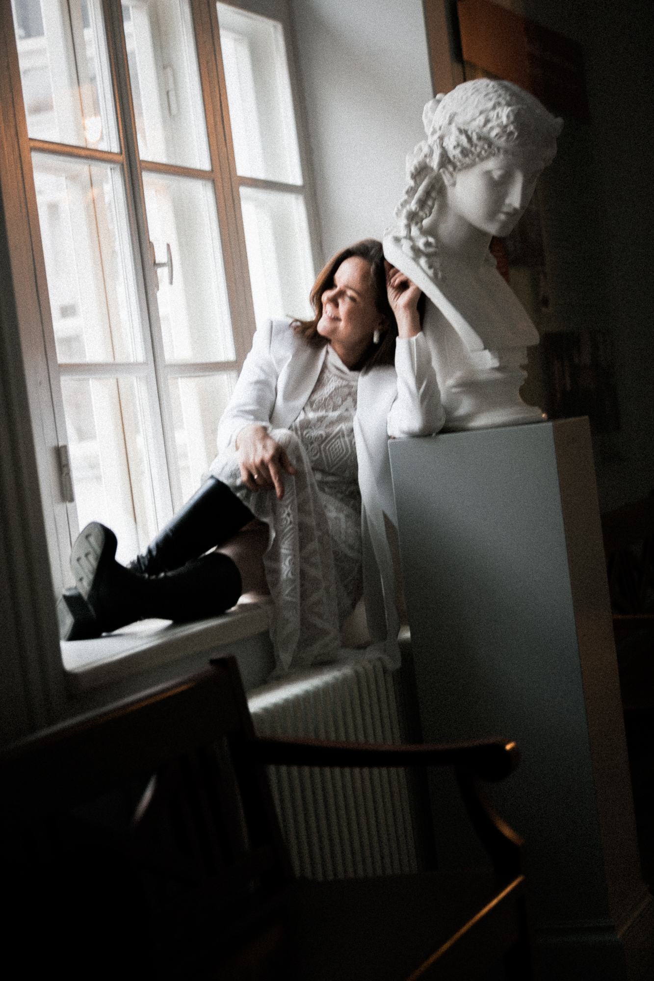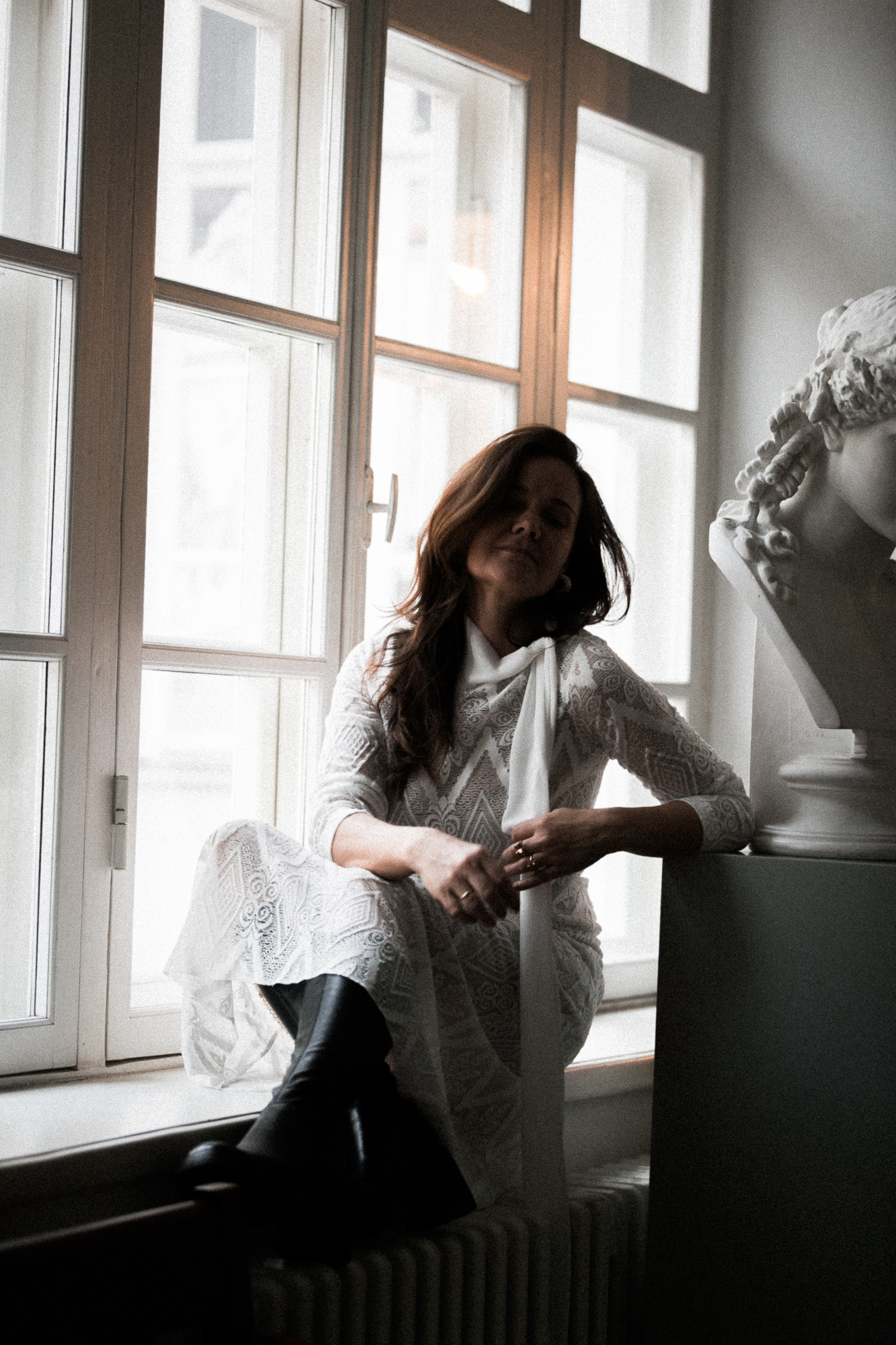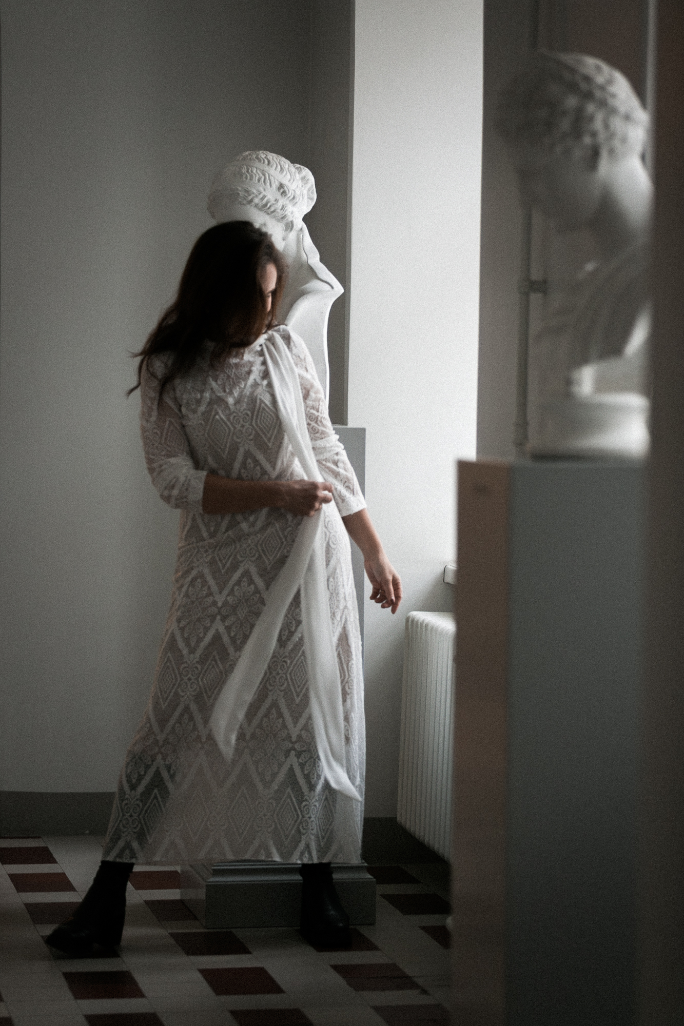 Kleidi õlad on lahtised ja pikad kaelusepaelad on mõnusasti sätitavad.